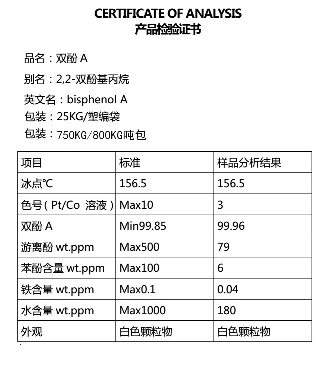 雙酚A,學(xué)名2,2-二(4-羥基苯基)丙烷,簡(jiǎn)稱二酚基丙烷。白色晶體,熔點(diǎn) 156~158 ℃。主要用于制備環(huán)氧樹脂(約占 65%)和聚碳酸酯(約占35%),其鉀鹽或鈉鹽是生產(chǎn)聚砜的原料,少量用作橡膠防老劑(見橡膠助劑)。